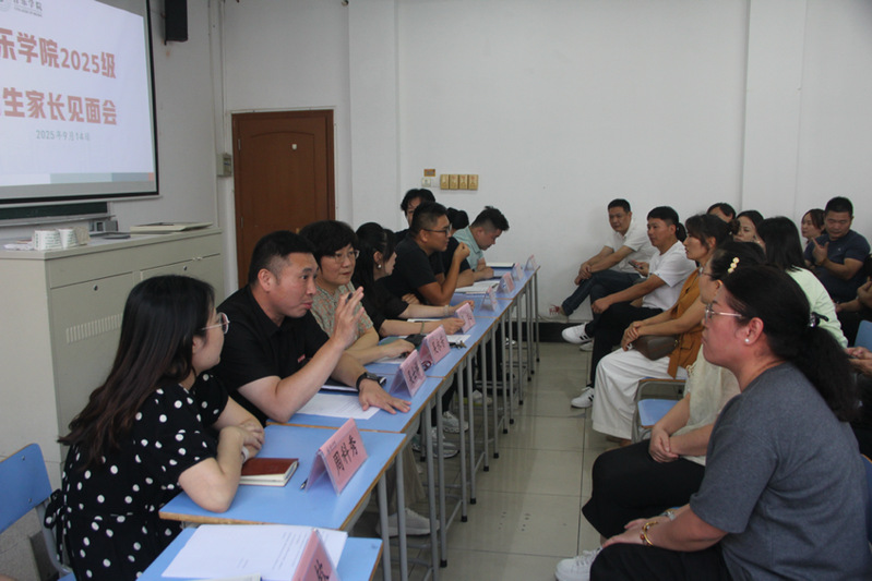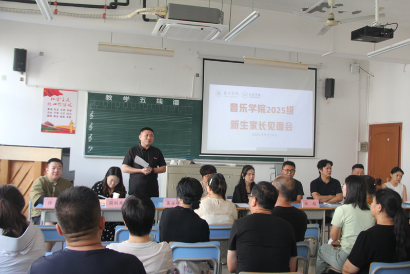 9月14日下午,音乐学院2025级新生家长见面会举行。学院领导班子、各科室负责人、2025级全体班主任及新生家长齐聚一堂,共话育人蓝图。会议由系主任吴士祥主持。
