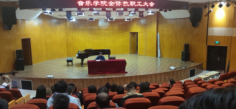 10月29日下午,音乐学院在若琼楼隆代音乐厅召开全体教职工大会,传达学习党的二十届四中全会、省委常委会扩大会议、市委常委会扩大会议和学校党委会扩大会议精神,党总支书记吴永芳主持会议并讲话。