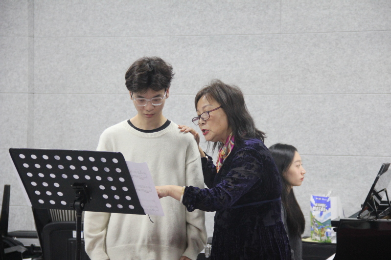 紧接着,刘雅丽老师以中国古诗词声乐作品的演唱为核心,对学生们演唱的《七步诗》、《有多远》、《定风波·莫听穿林打叶声》、《梅花引》等经典作品进行了详细指点;刘老师从气息控制的稳定性、发声位置的准确性到情感表达的贴合度等方面,中肯地给学生们提出了宝贵的建议,并充分肯定了学生们的学习成效和音乐潜力。在轻松融洽的教学氛围中,学生们主动提问、大胆试唱,短时间内掌握了多项实用的演唱方法和技巧,收获满满。