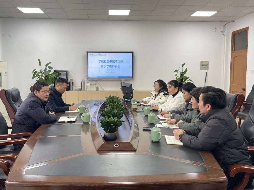 11月20日下午,校党委书记李俊杰来音乐学院,同步开展党的二十届四中全会精神宣讲与发展工作调研指导,为学院高质量发展精准把脉、定向领航。校党委委员、组织部部长赵卫川陪同,音乐学院党政班子参加。