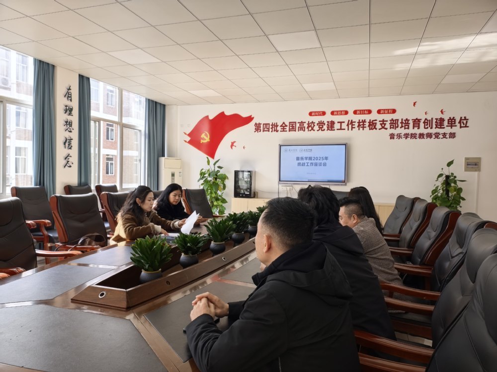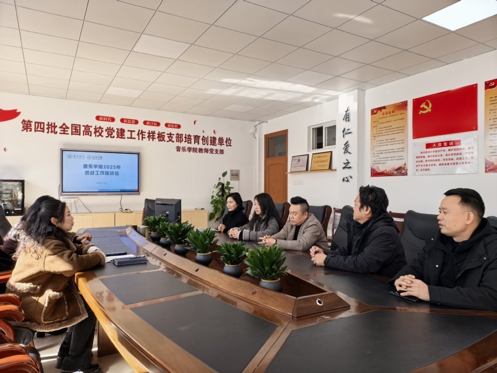 12月26日,音乐学院召开统战工作座谈会。会上,学院统战委员全面总结2025年统战工作成果,与党外人士聚焦艺术类专业转型、学院未来发展规划、内部治理效能优化等核心议题展开深入交流,凝聚发展共识。