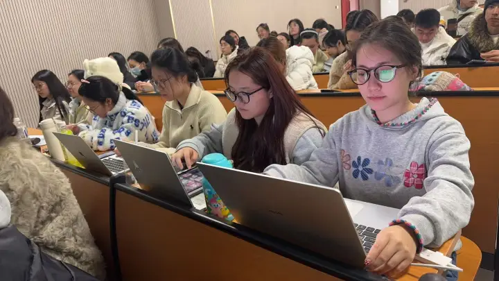 同时,她倡导迭代思维,通过校准需求、升维思考、分步优化等方式,持续打磨AI生成内容,实现从能用到好用的跃迁。讲座现场,学生们立即投入实践,体验了从课件生成到网页代码输出的完整流程。