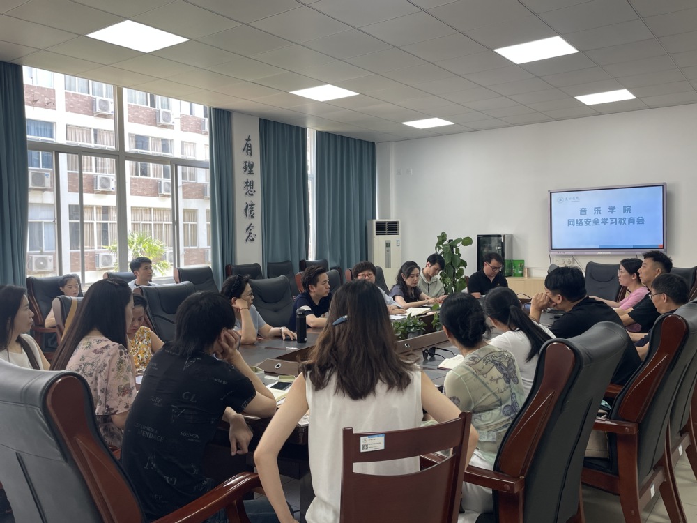 为强化网络安全意识,规范网络行为管理,6 月26日,音乐学院召开网络安全专题学习会,学院综合科、教务科、学生科等职能部门工作人员,教师党支部成员、各系部代表、直属工会小组负责人等共同参会。