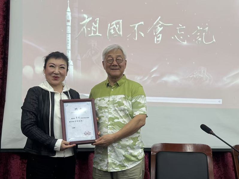 讲座结束后,王磊华教授代表音乐学院向曹进大校颁发名誉教授证书,对其深耕军旅文艺、弘扬航天精神、助力学校思政教育与美育融合发展表示衷心感谢。曹进大校表示,期待未来与丽水学院师生深入交流,共同探索艺术+思政的育人新路径。
