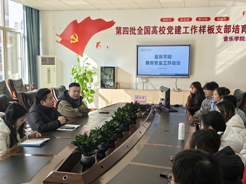 1月7日,音乐学院在学院会议室召开期末安全工作会议,同步举行寝室长座谈会暨表彰活动。党总支副书记、副院长夏伟涛,辅导员周科秀、徐钦出席,各寝室长代表参加会议。